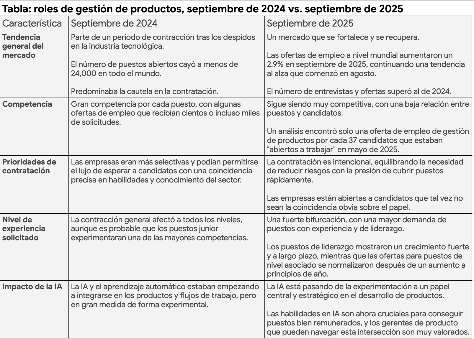Si bien hace un año se redujo mucho la oferta de puestos de producto, este año poco a poco se recupera y fortalece el mercado laboral, aunque todavía hay una gran demanda de trabajo y poca oferta de puestos.