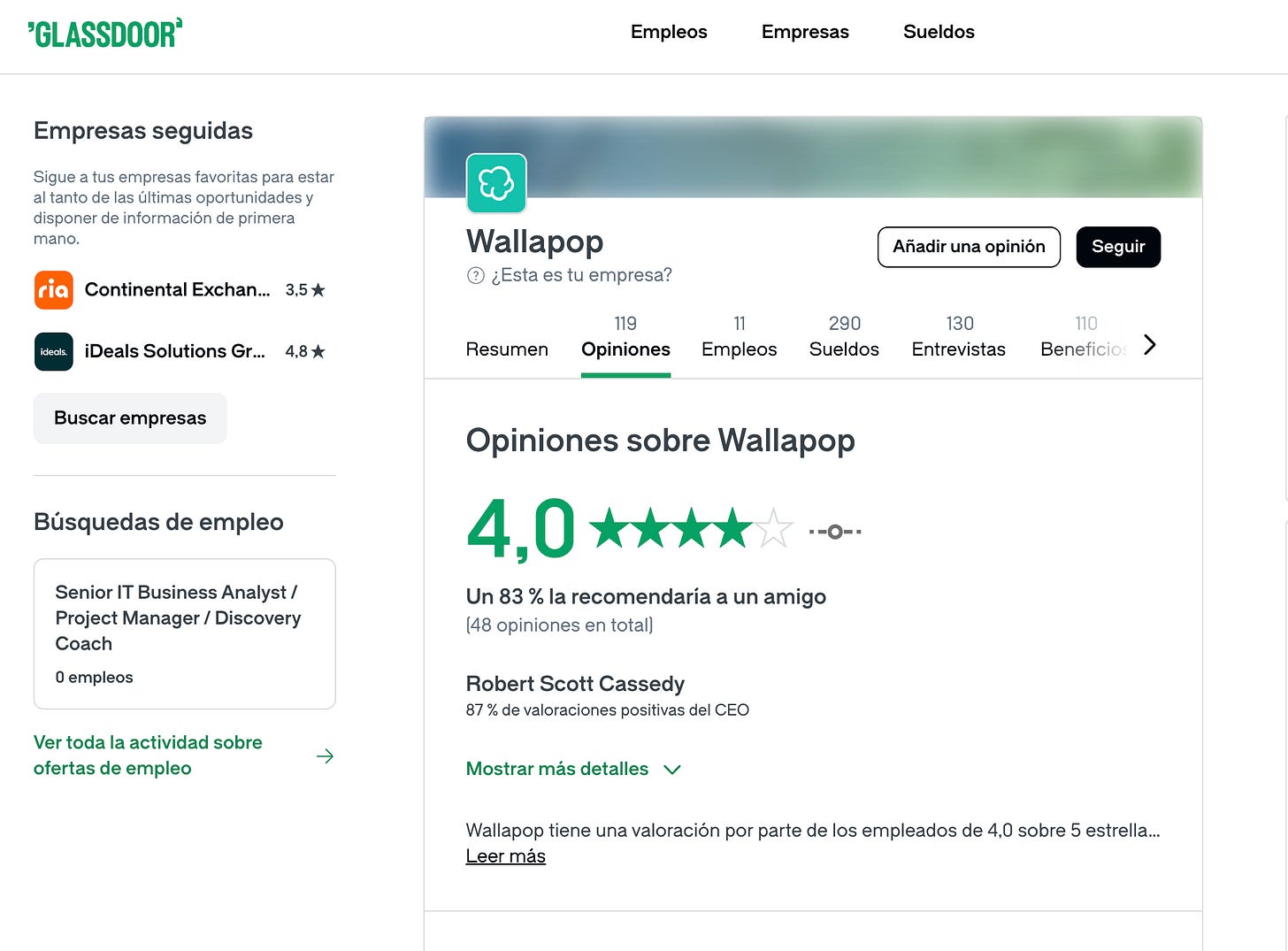 Análisis de la empresa en Glassdoor